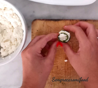 Prendete una striscia di zucchina e spalmateci sopra la farcia ottenuta, poi arrotolatela. Procedete così fino a esaurire tutti gli ingredienti.